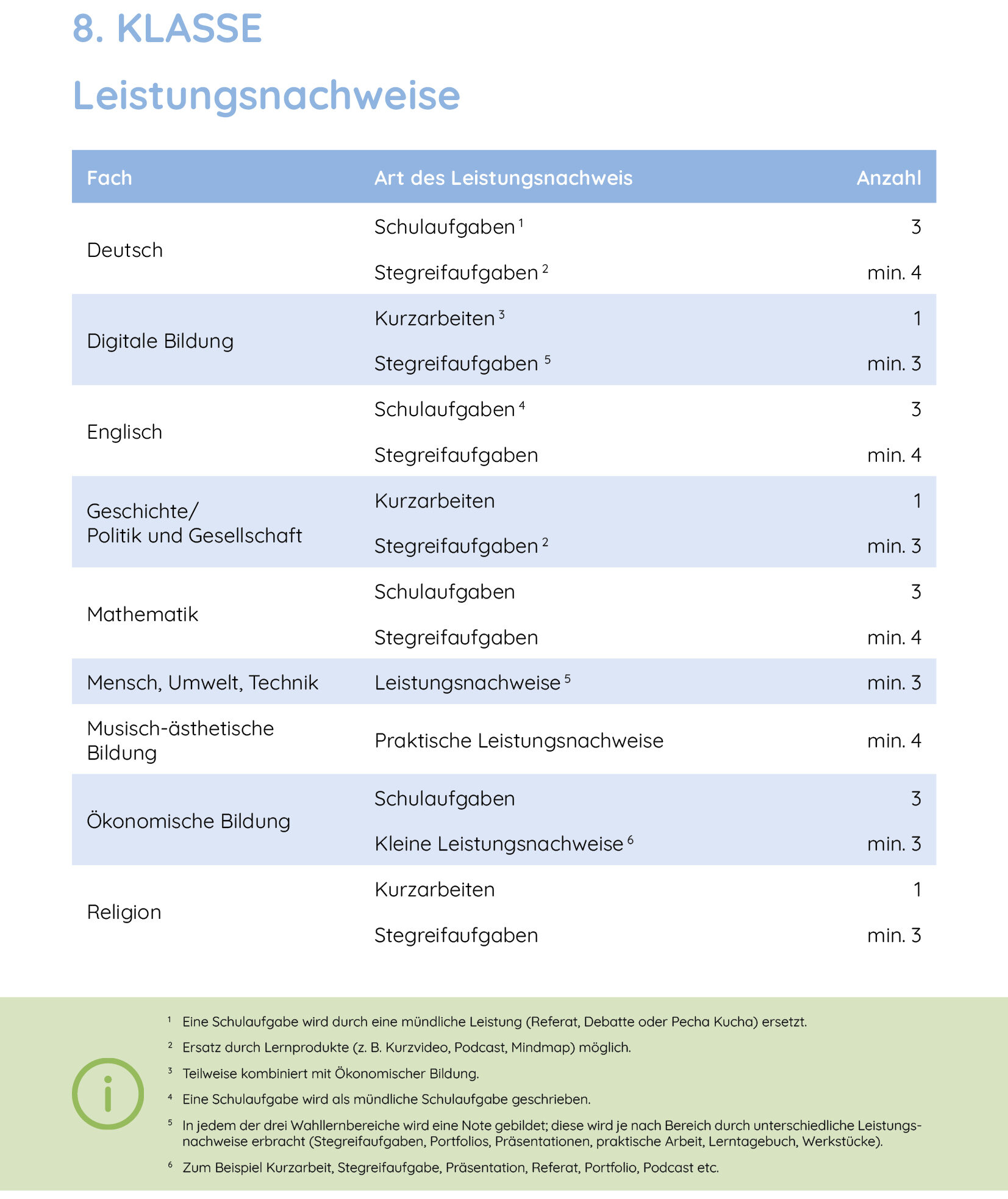 Fächer/Stundentafel